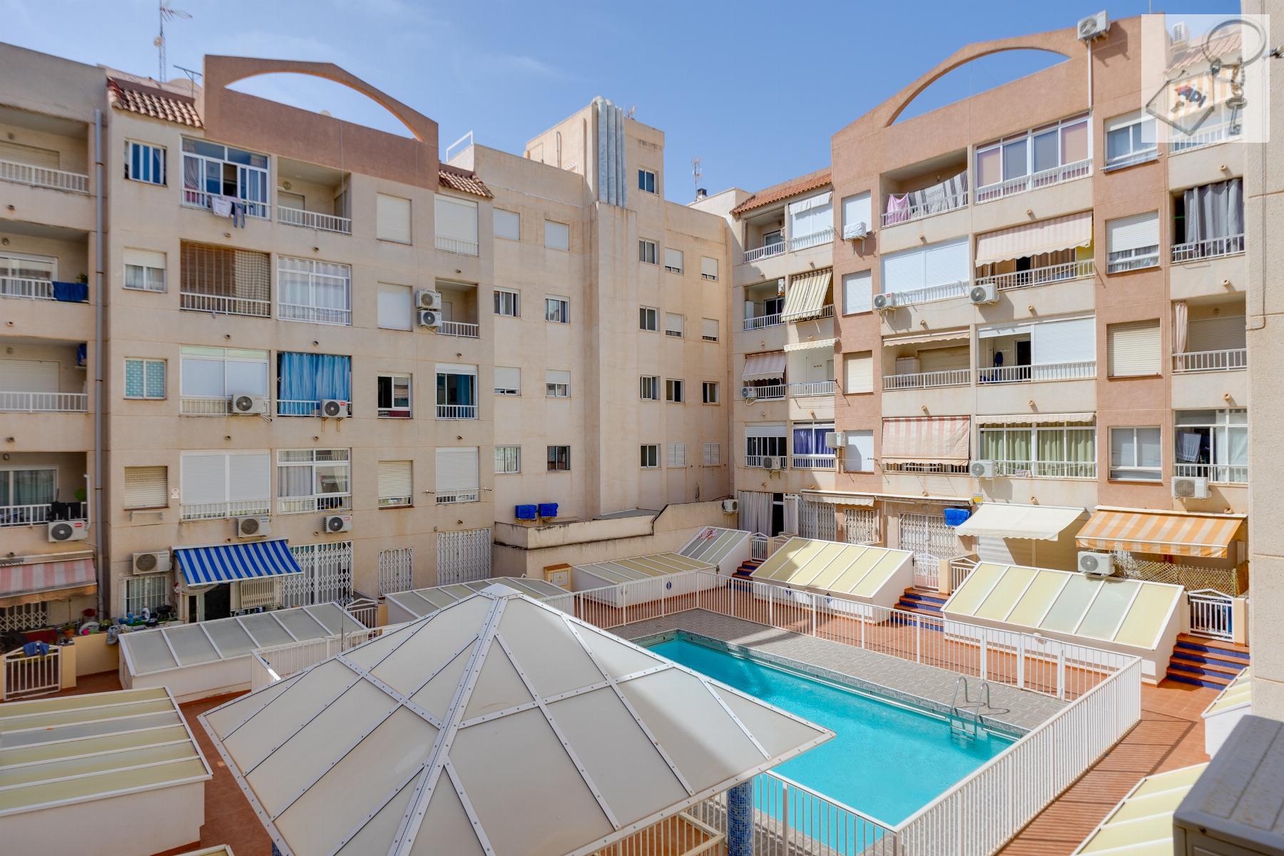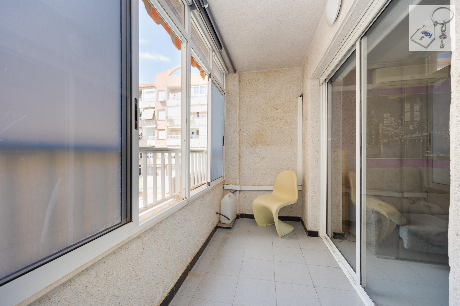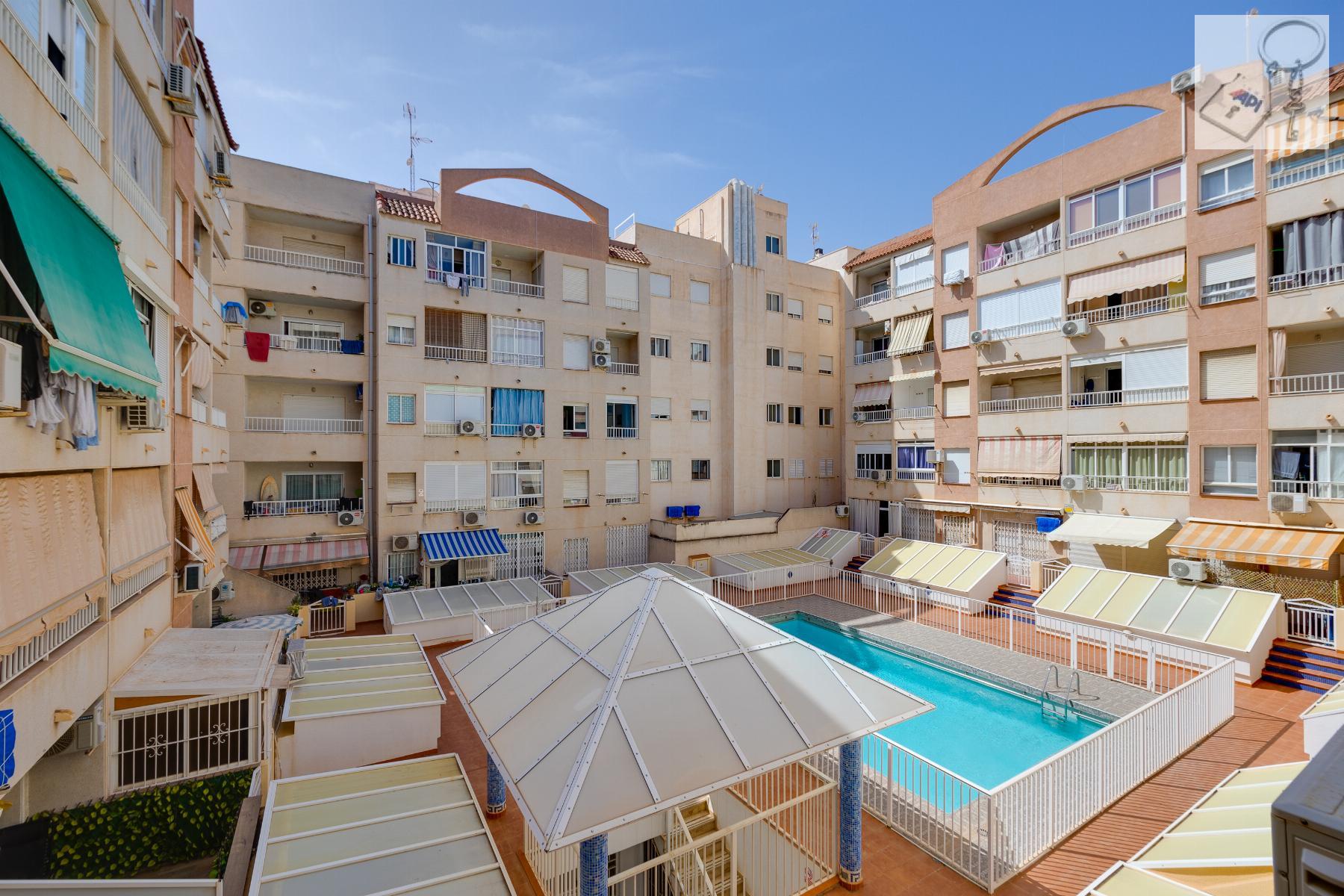 Living just 250 metres from the sea in Torrevieja is a privilege and now it can be yours. This cosy 45 m² apartment, built in 1991 and in good condition, combines location, natural light and functionality in one of the most sought-after areas Playa del Cura.Its southeast orientation guarantees brightness for most of the day , creating a warm and pleasant atmosphere all year round. The open-plan kitchen enhances the sense of space and flow, while the 7 m² glazed terrace adds a versatile extra area to enjoy in any season.Main Features 45 m² built 1 bedroom 1 bathroom Open-plan kitchen 7 m² glazed terrace Southeast orientation Communal swimming pool 250 metres from the beachSurrounded by bars, restaurants, supermarkets, pharmacies, shopping centres and parks, everything you need is within easy reach no car required .Alicante Airport is approximately 45 km away, offering convenient national and international connections.An ideal opportunity as an investment, holiday home or seaside residence .Contact us today and schedule your viewing. Your life by the coast starts here.