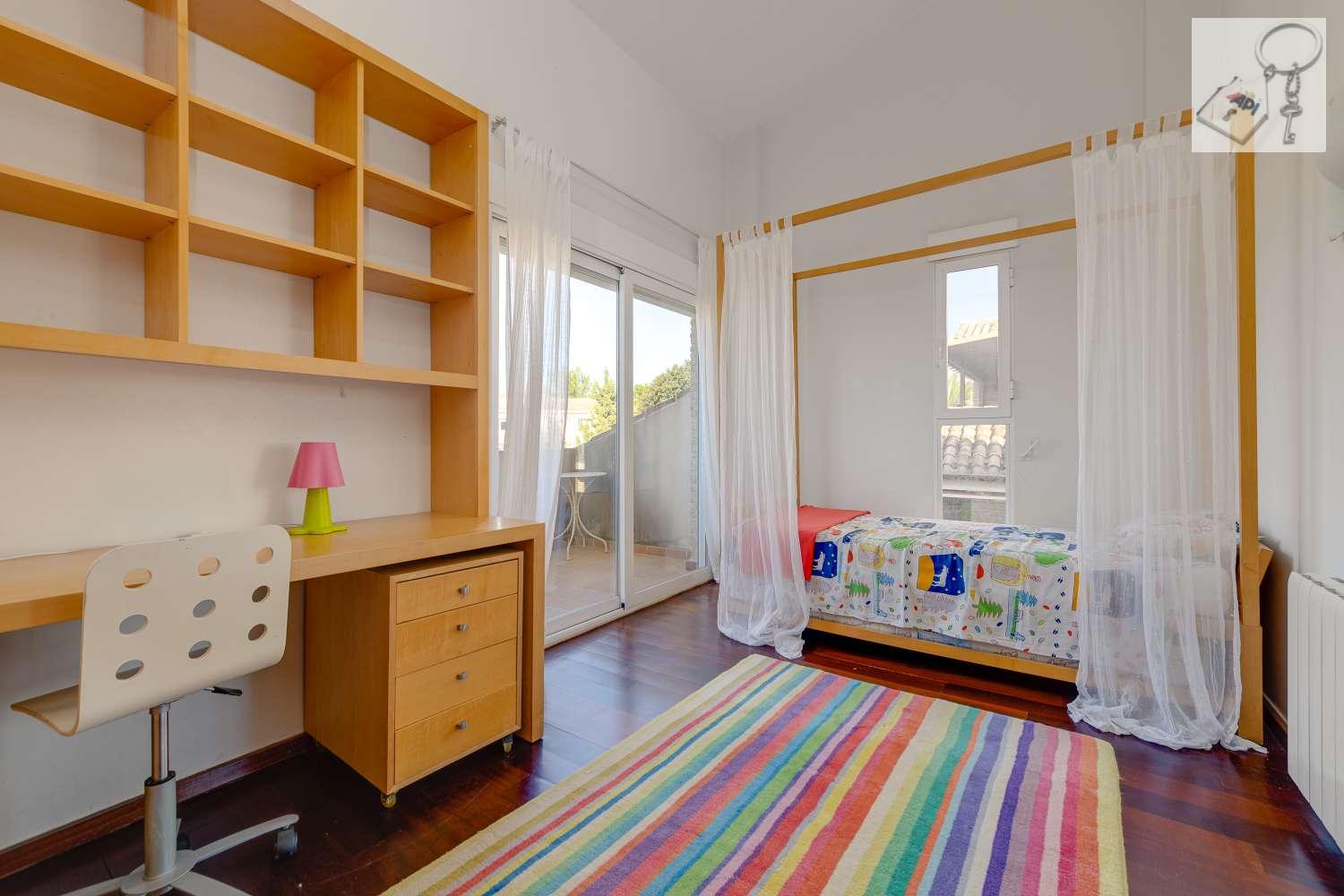 En la primera planta tiene la zona de descanso con diferentes estancias y baños. Suman un total de 3 dormitorios dobles con vestidor, baño y dos de ellos acceso a boardilla.