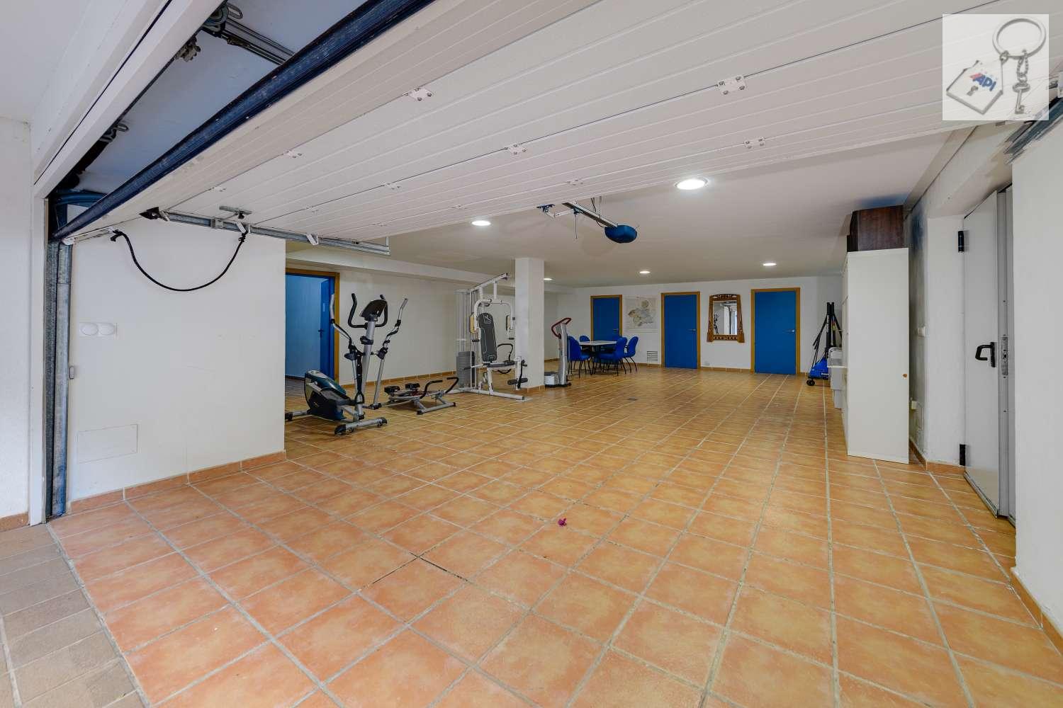 En la planta baja o zona de ocio, podemos disfrutar de un grandísimo salon para celebraciones, una zona de estar con sofás y chimenea y por ultimo una estancia dedicada a la actividad física y garaje. En este nivel también contamos con un baño completo con una habitación para el servicio y acceso directo al exterior.