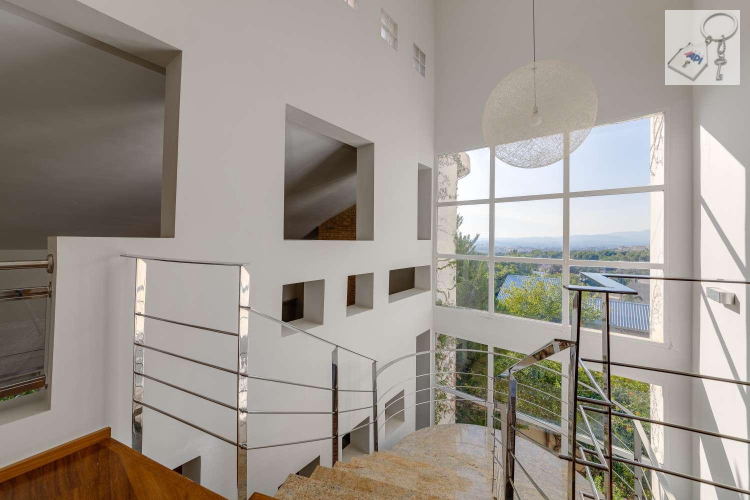 Construida en en 2008, sobre una parcela de 1000m2, la vivienda se distribuye en tres alturas con un total de 550m2 construidos en diferentes estancias.