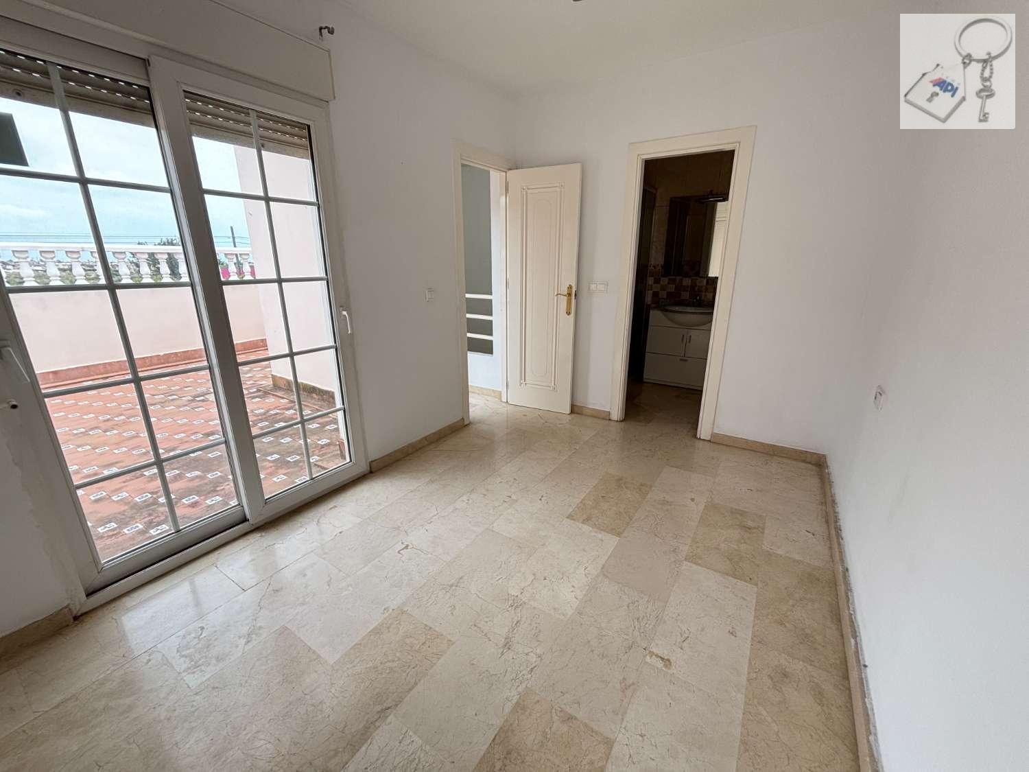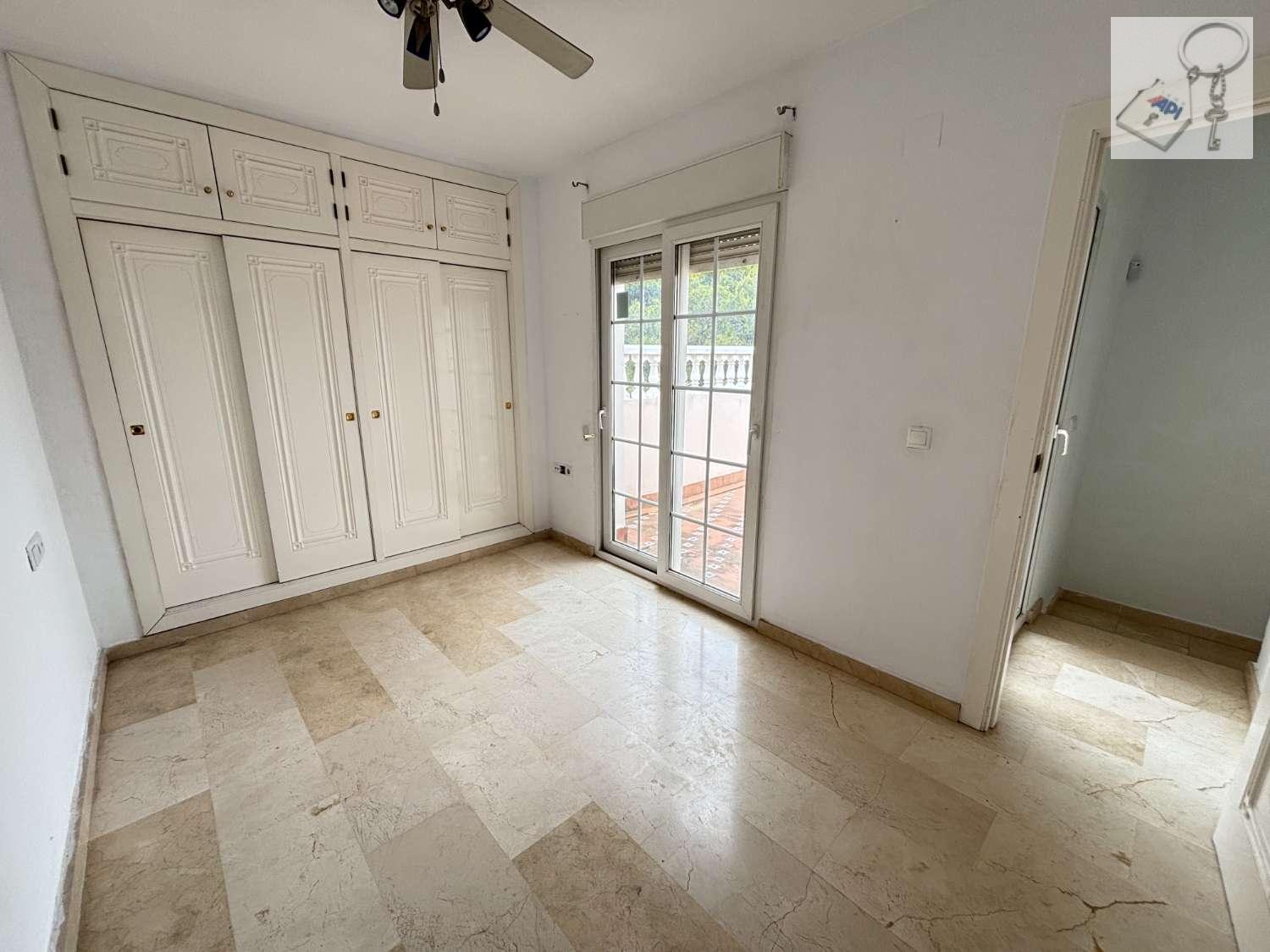 Övervåningen: stort dubbelrum med eget badrum, en stor inbyggd garderob och tillgång till en solariumsterrass på cirka 18 m², perfekt för att njuta av vädret året runt.